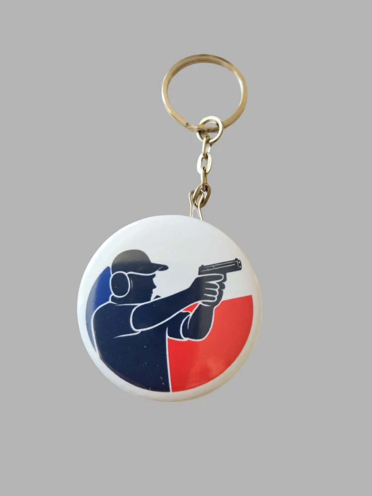 Přívěsek se střeleckým potiskem, který ti pohlídá klíče a kdykoliv zazvoní: "Hele, klid, já ten lahváč otevřu."